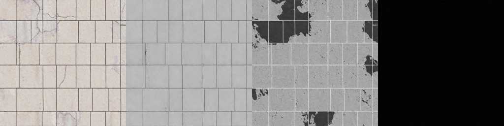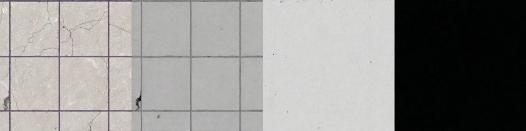 Above photographed part of light ceramic tiles with gray veins. |